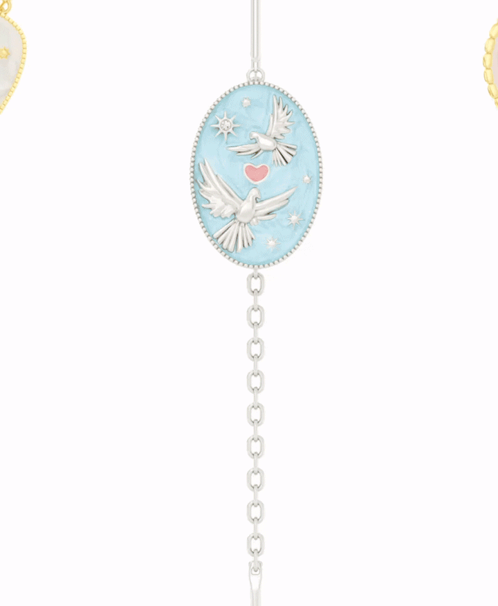 Orecchino Pendente con Due Tortorelle e Cuore