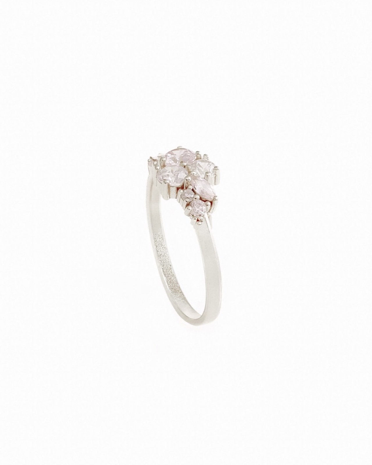 L’Anello Blush presenta un design essenziale che mette in risalto la delicatezza delle sue pietre. Le zirconie tonde, nelle sfumature del bianco e del rosa, si raccolgono in una composizione ariosa che ricorda piccoli boccioli appena schiusi. È un anello capace di accompagnare con naturalezza sia look quotidiani sia momenti più ricercati.