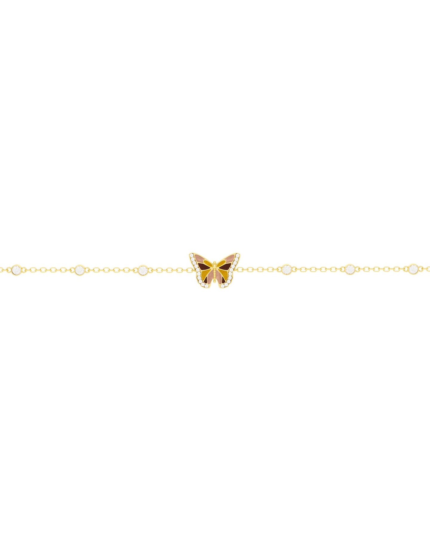 Il Bracciale Farfalla racchiude la magia dell’autunno: le ali in smalto con effetto perlato nei toni caldi del nocciola, del marrone e del senape, sono illuminate da delicati punti luce bianchi che ne esaltano la leggerezza. La catena del bracciale è arricchita da punti luce con incastonatura bezel.
