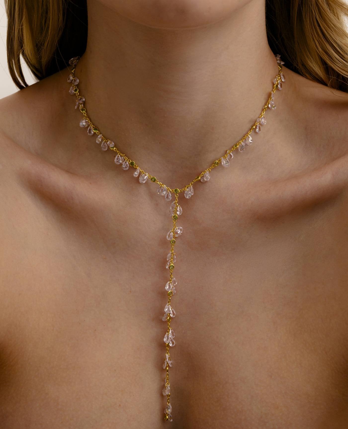 Collana a Y in Ottone con Zirconie a Goccia Pendenti