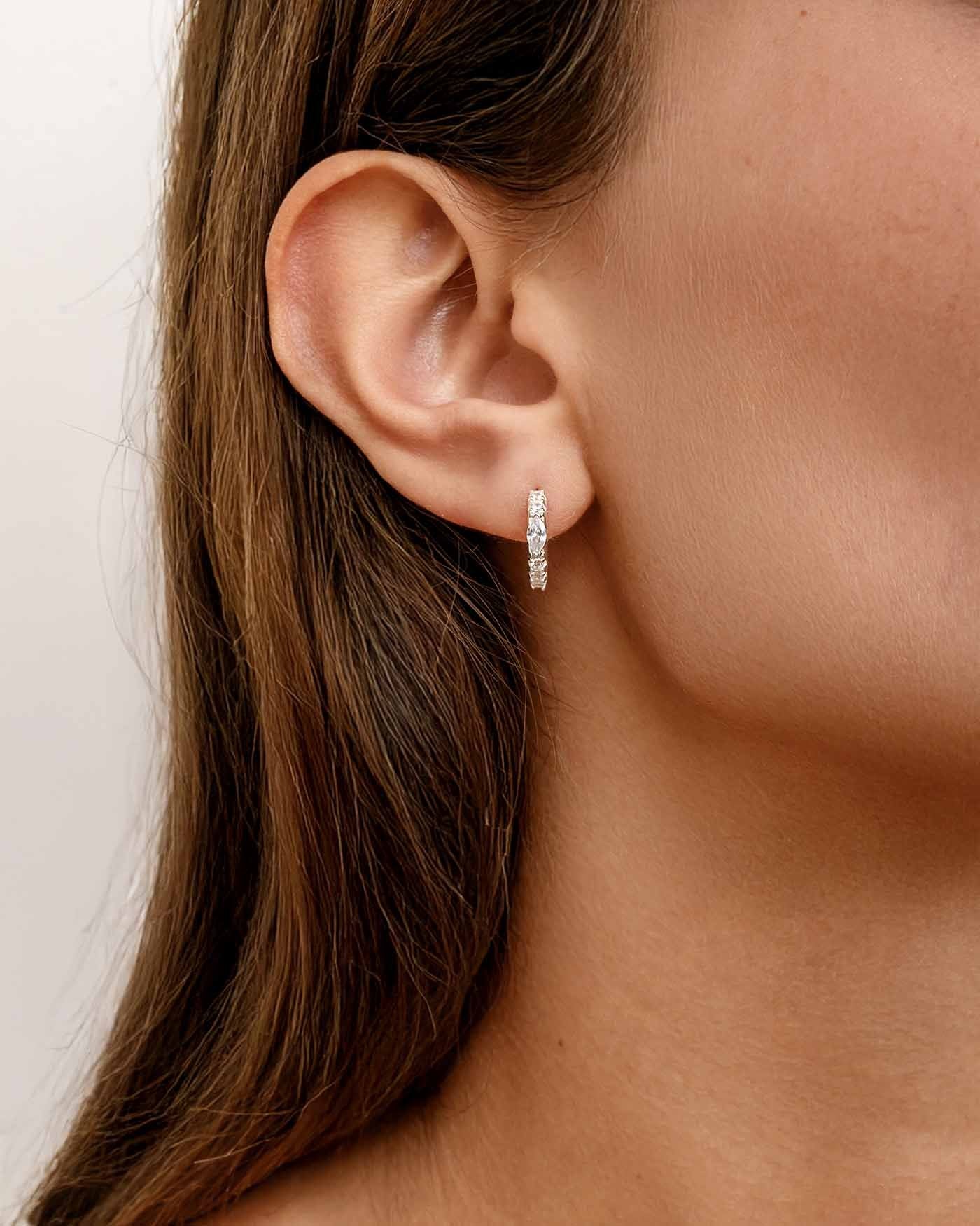 Marquise abbina delicatezza e carattere in un design compatto. La pietra centrale taglio marquise, affiancata da piccoli punti luminosi, crea un equilibrio raffinato e moderno che valorizza la semplicità della forma circolare. Le dimensioni contenute lo rendono un gioiello pratico ma ricco di dettagli. Oltre al lobo, può essere indossato anche su piercing come l’helix, creando abbinamenti più pieni e personali.