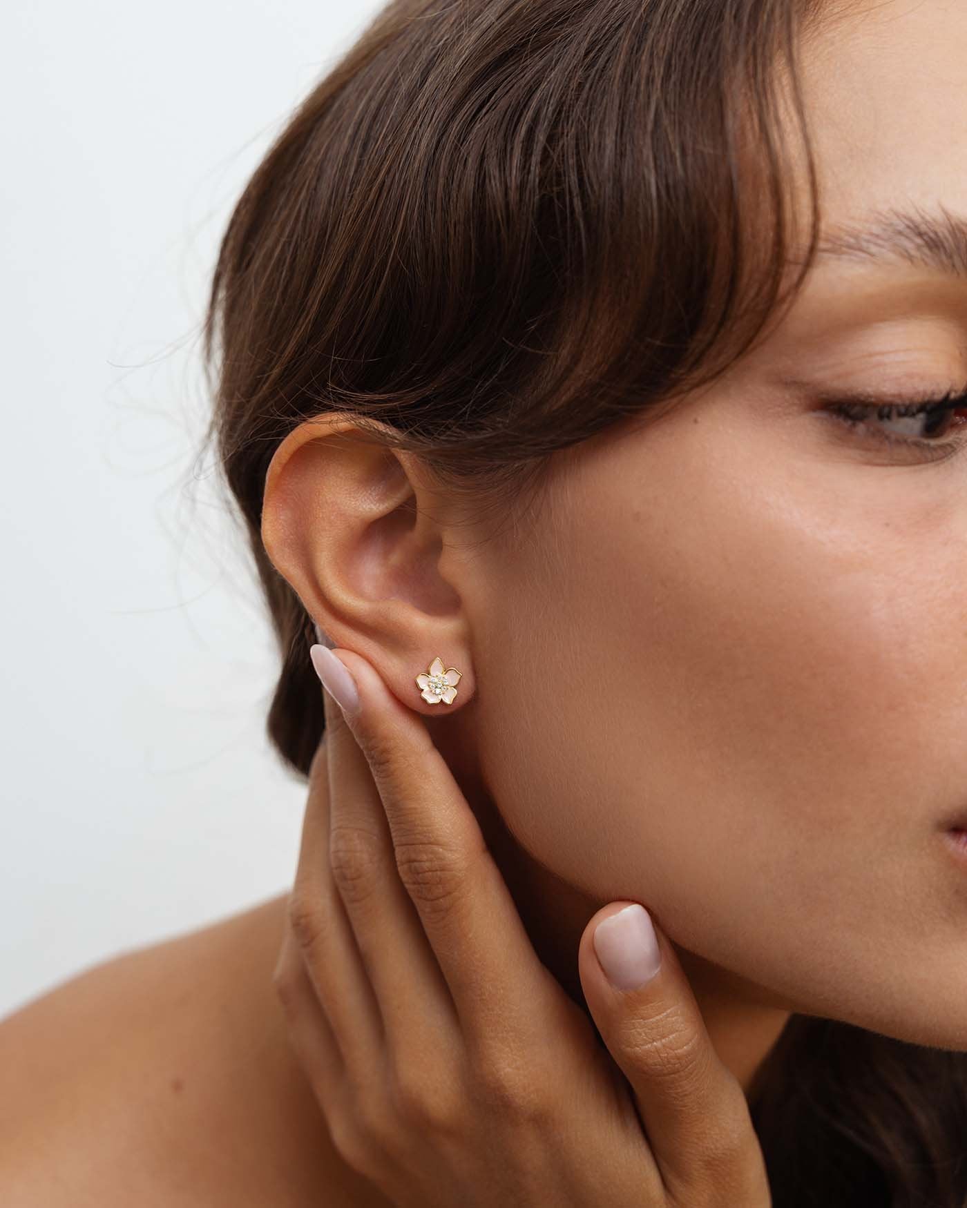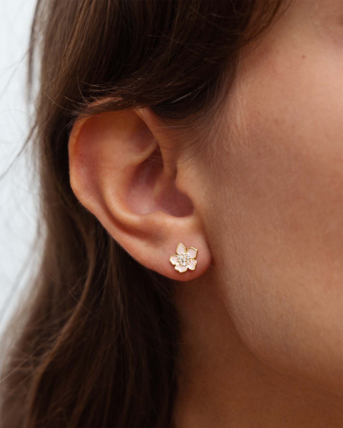 L’Orecchino Amaryllis celebra la bellezza del fiore che dà il nome all’intera collezione. La sua forma a cinque petali racchiude al centro piccoli punti luce bianchi. La tonalità rosa cipria, ravvivata da tocchi di luce bianca, evocano l’energia di una natura che sa rinascere e trasformarsi. Facile da abbinare sia a look quotidiani che a occasioni speciali, diventa il punto di partenza ideale per costruire combinazioni armoniose con gli altri gioielli della collezione.