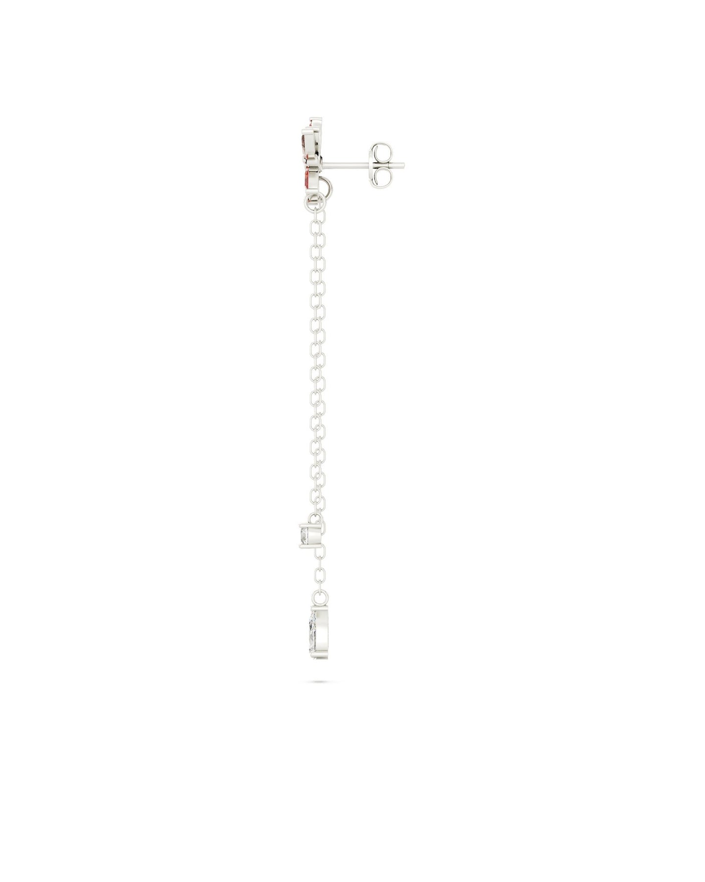 Dal ramo scendono due sottili catene pendenti, ciascuna impreziosita da una pietra luminosa finale. La chiusura a farfallina assicura stabilità, mentre la leggerezza della struttura lo rende confortevole da indossare per tutta la giornata.