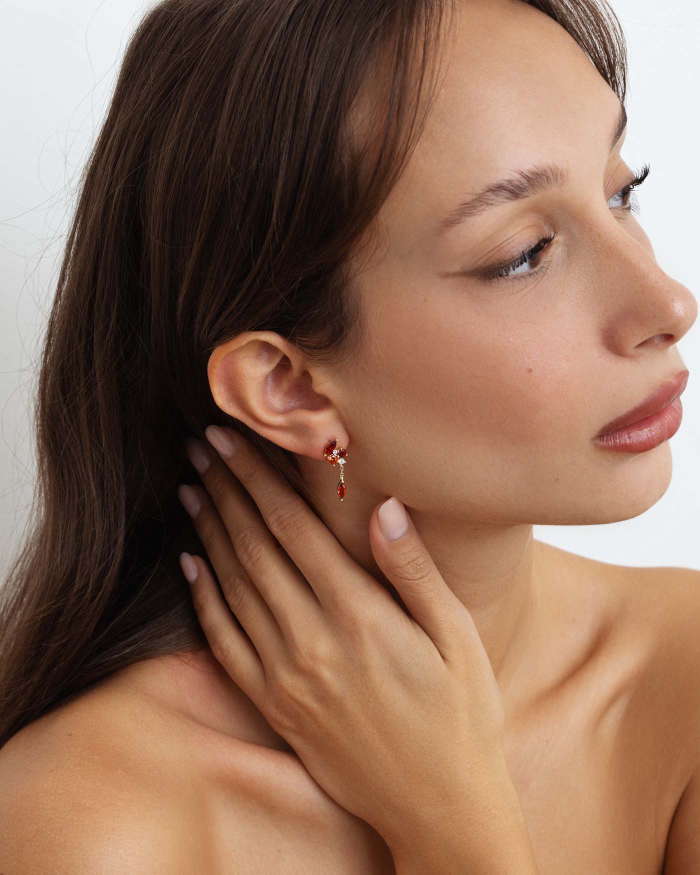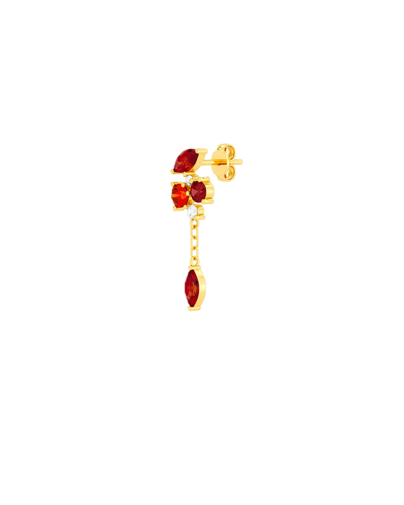 L’Orecchino Scarlet gioca con la luce e con le sfumature del rosso, dal più intenso al più brillante, impreziosito da tocchi di bianco che ne esaltano la luminosità. Le pietre, di diverse dimensioni e tagli, creano un movimento armonioso che dona carattere e raffinatezza al look.