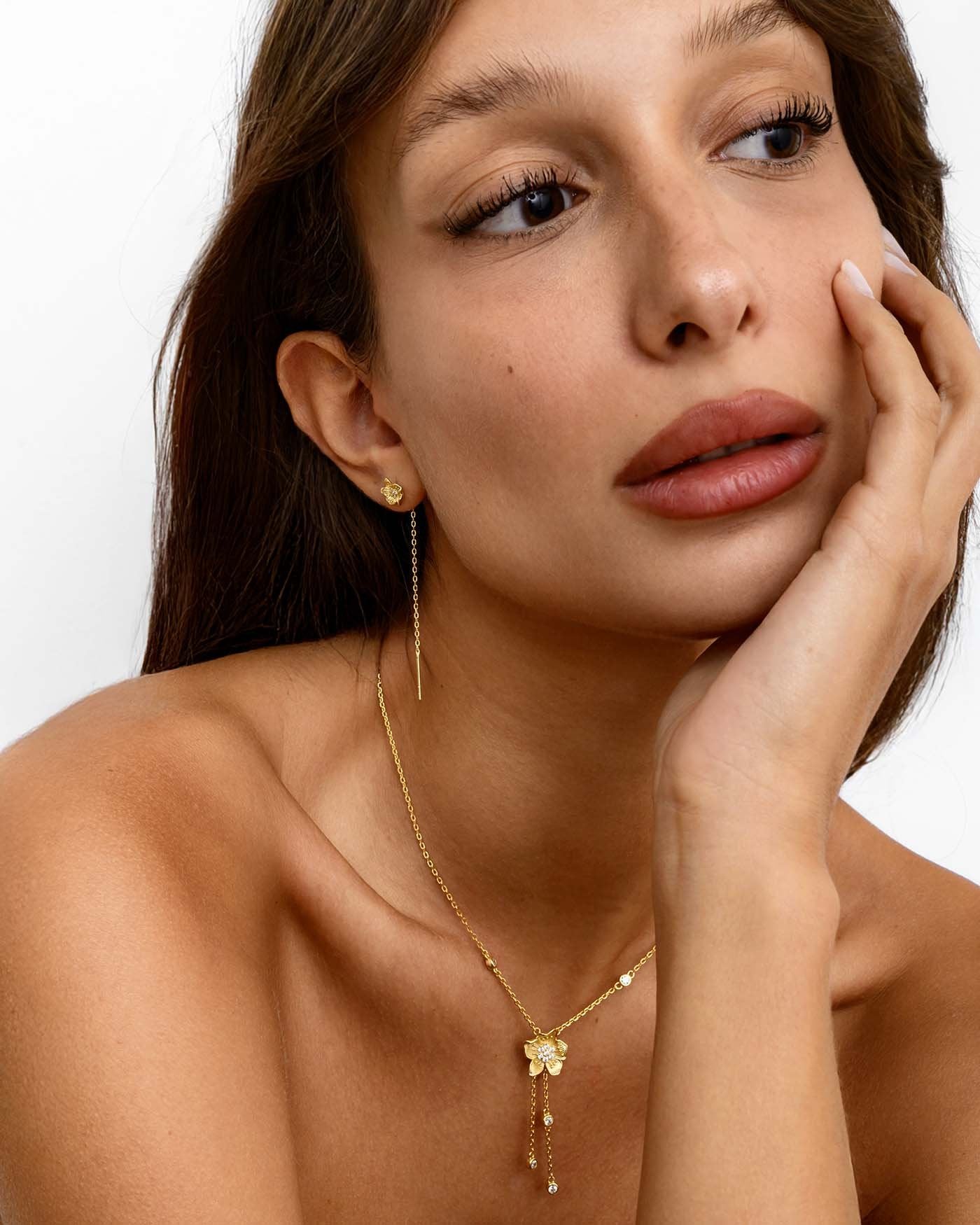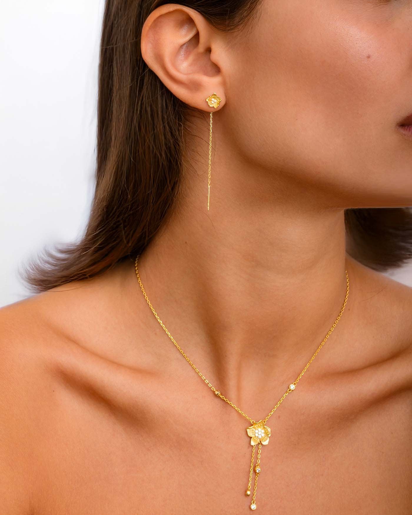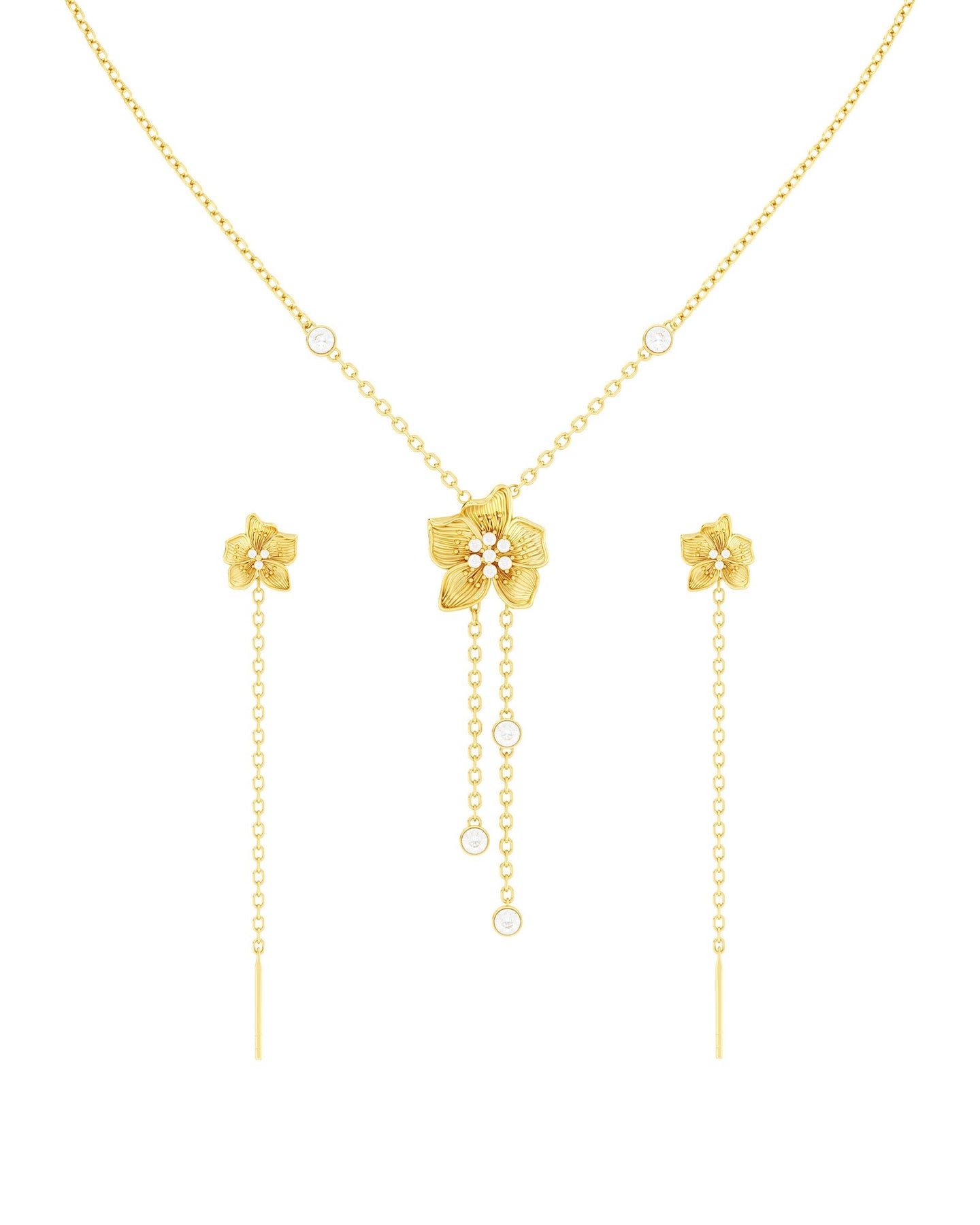 Set Di Orecchini E Collana Con Fiore Bianco Placcati Oro