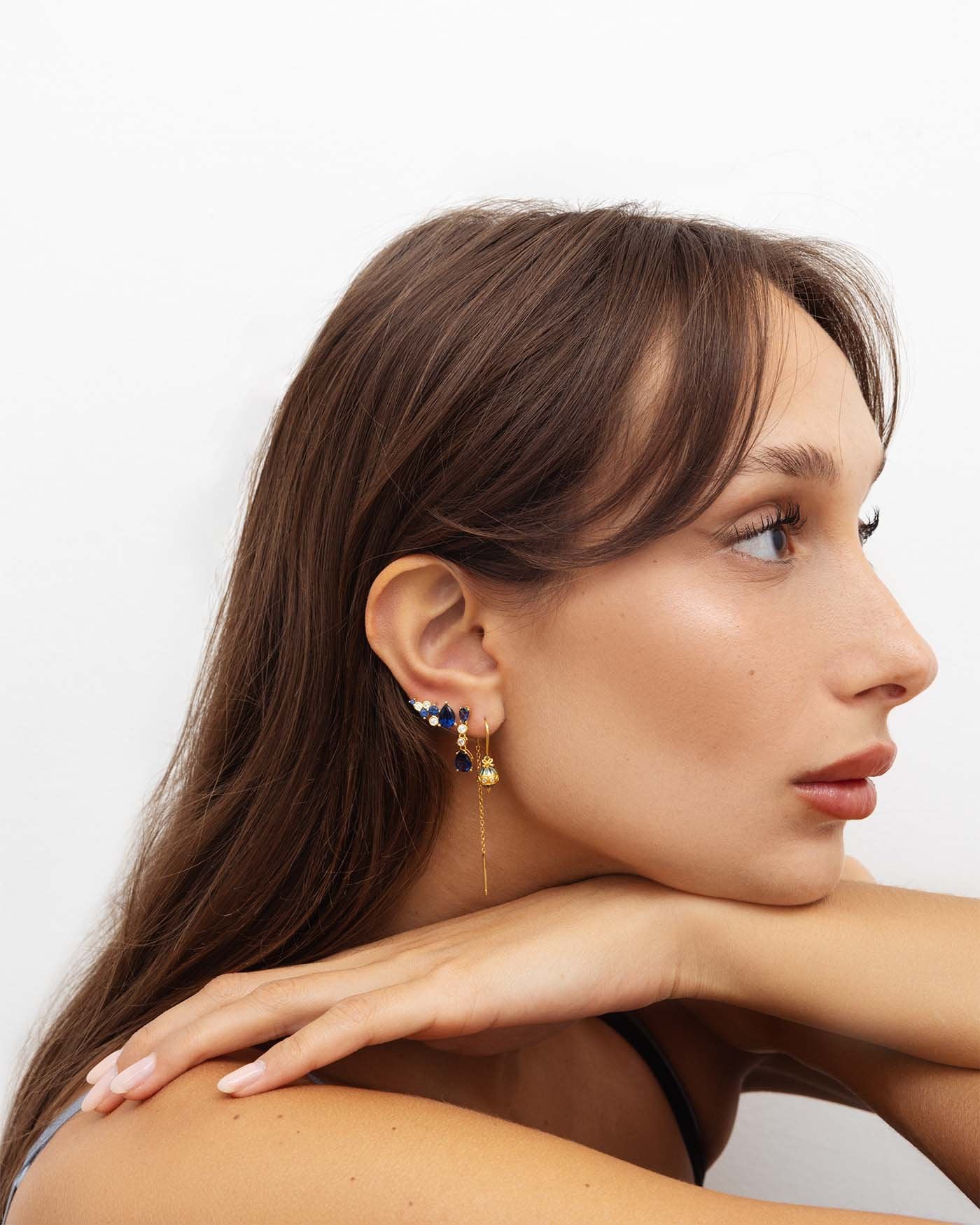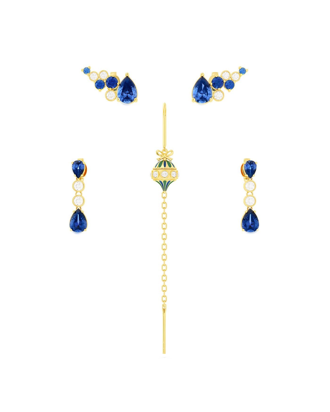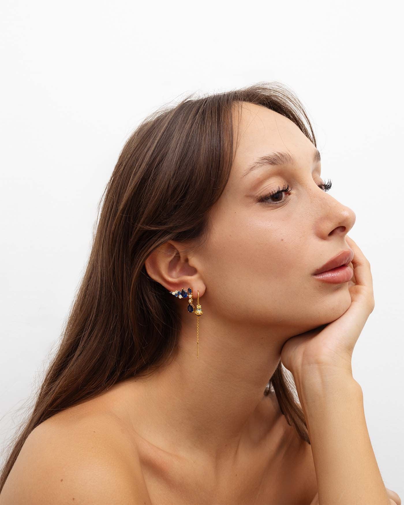 Set Di Orecchini Blu Placcati Oro