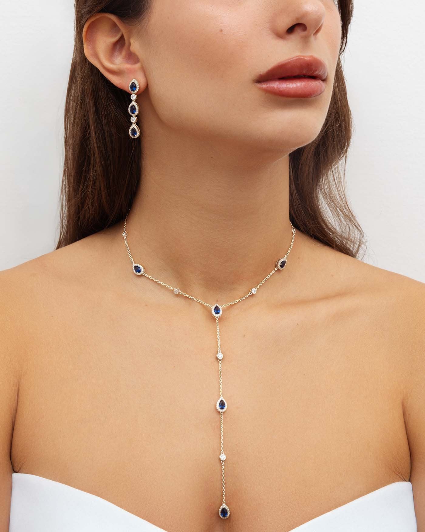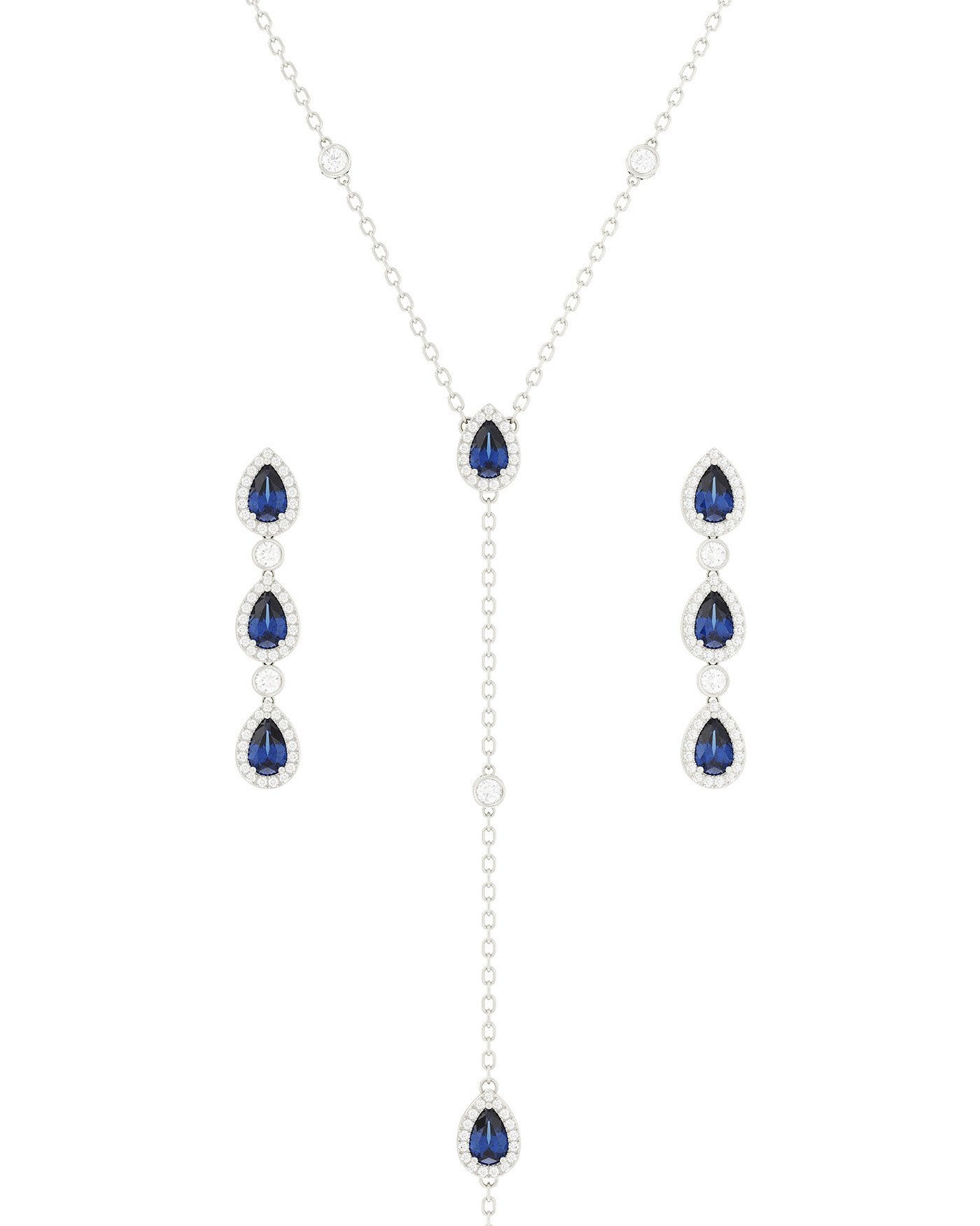 Set Di Collana E Orecchini Con Pietre Blu In Argento
