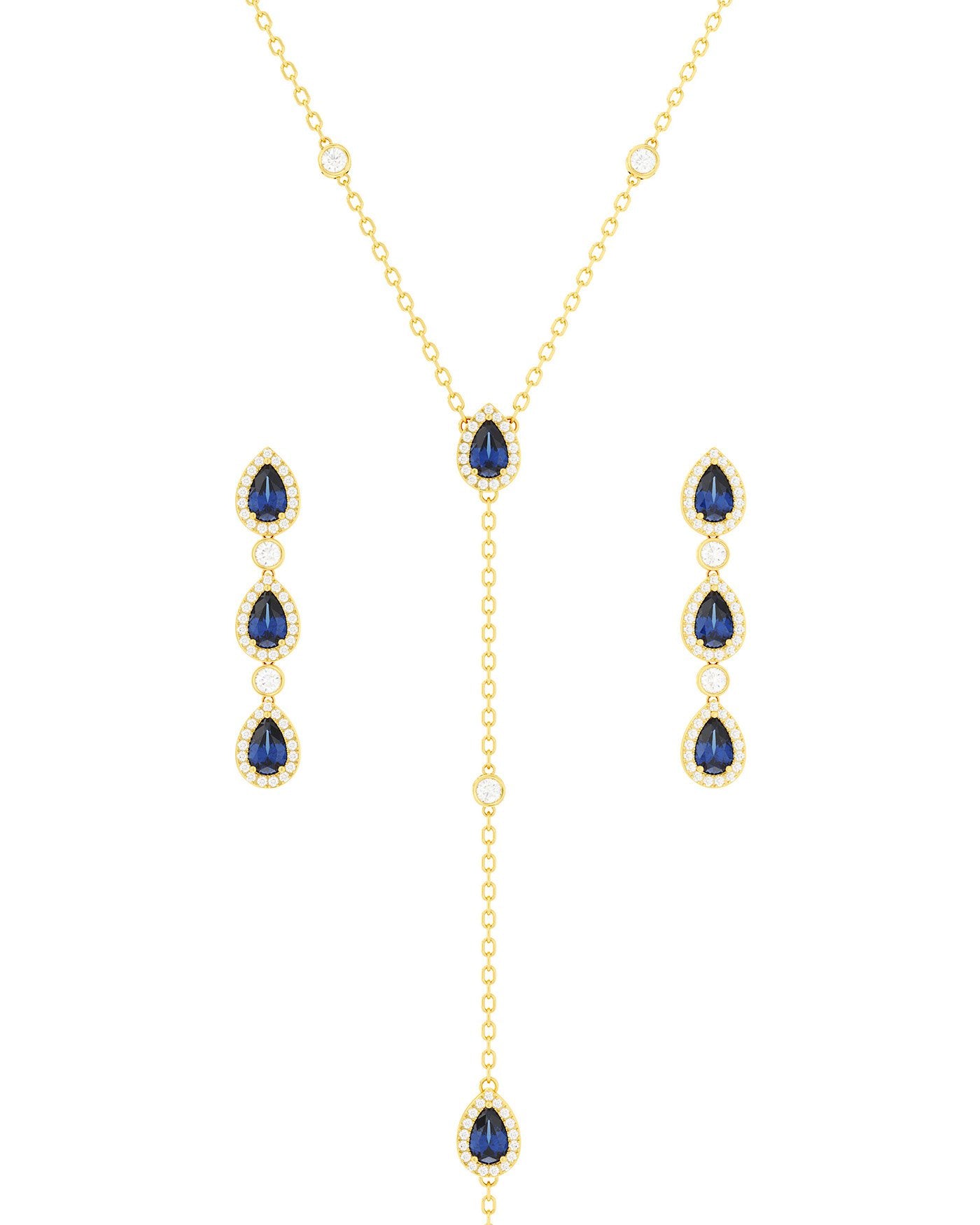 Set Di Collana E Orecchini Placcati Oro Con Pietre Blu